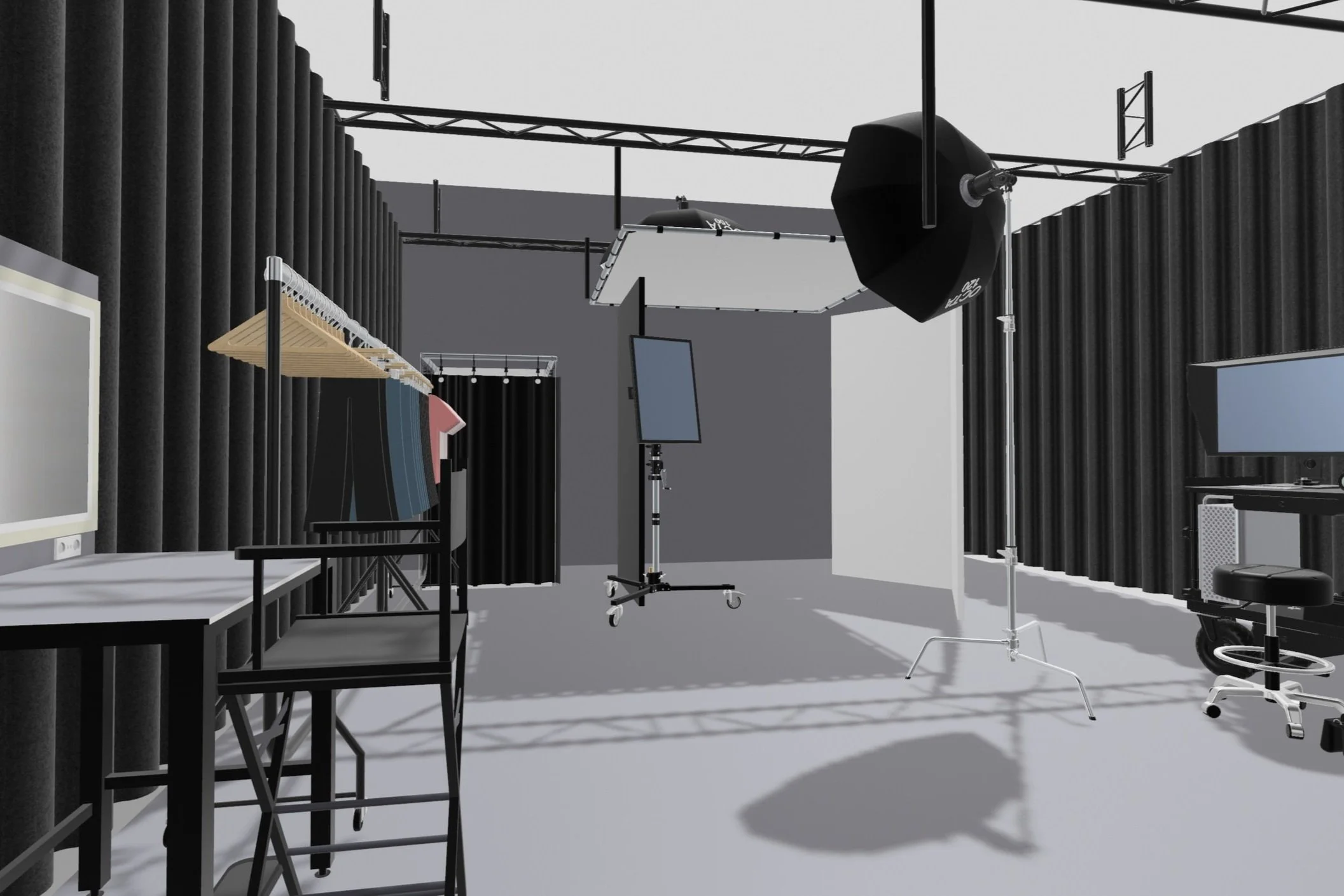 We really believe in our Virtual Models, they provide valuable information to the client. With these models we can test Lighting Set-ups, the usable working space of the set, and show teams ways we can configure fixed and non fixed items.